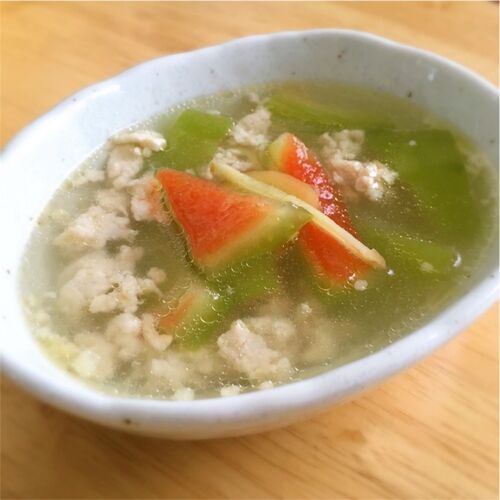 ・スイカのスープスイーツで食べて残った部位をスープに活用。違和感なく美味しく食べられます。卒論?として薬膳レシピ提出義務があるのですが。それを踏まえて日常生活の ごはんも薬膳的にアレコレ考えてこさえております。